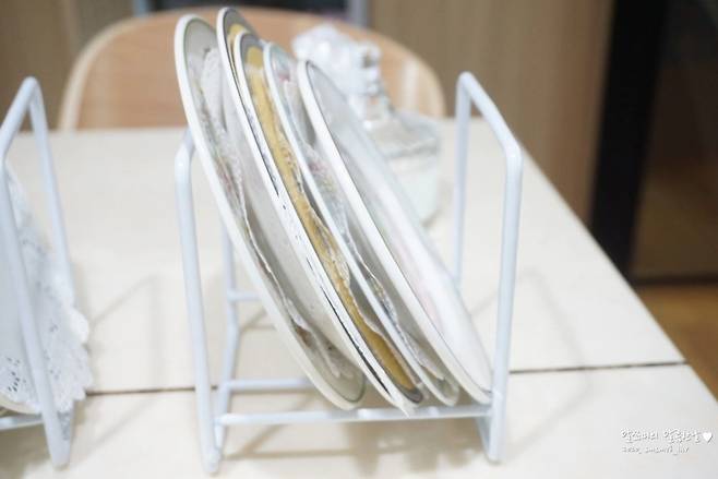 그릇 정리대에 옆으로 세워 보관하면 끝!