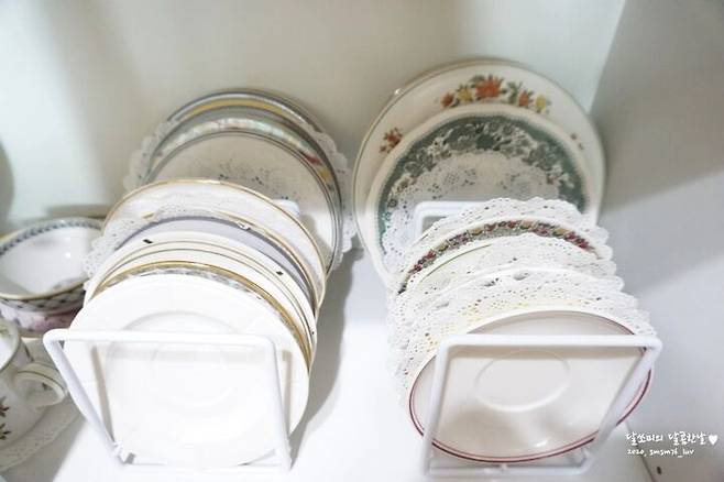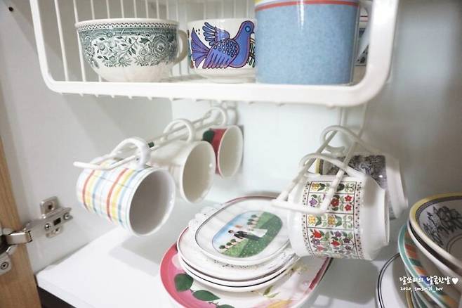 컵은 컵끼리, 소서는 소서끼리 정리해두니 공간 활용에 좋더라고요. 짝을 찾는 게 일이겠지만 소서도 차곡차곡 정리해두면 찾기 어렵지 않더라고요.