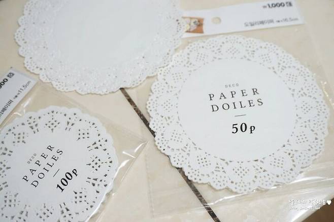 만약 도일리 페이퍼가 없다면 사용하지 않는 냅킨을 잘라서 이용해도 좋아요. 키친타월도 괜찮고요.