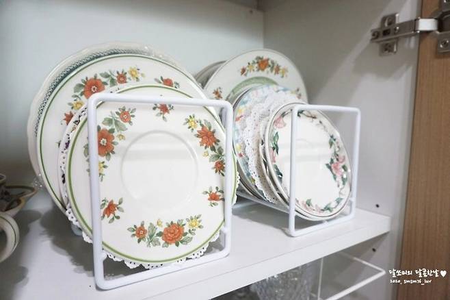 이건 지름 20cm 이하의 작은 접시를 정리하기 좋은 정리대예요.