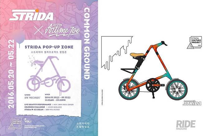 지난해 진행되었던 Vol. 1 그라피티 작가 알타임 죠와의 콜라보레이션, Vol. 2 사진작가 Rotta와의 콜라보레이션이 그렇고, 지난해 5월 오프라인과 온라인을 통해 진행했던 스트라이다 컬러링 이벤트 등을 통해 예술과 자전거의 영역을 확장해 왔다. 스트라이다 컬러링 이벤트는 ‘스트라이다 컬러링 공모전’ 방식을 통해 스트라이다에 새로운 생명력을 부여하기 위한 시도다. 라이더가 세상에 하나뿐인 스트라이다를 직접 디자인하여 자신만의 상상을 사람들과 함께 공유하는 시간을 마련하면서 자연스럽게 스트라이다를 알리는 것은 물론이고 긍정적인 라이프스타일의 가치를 공유하는 계기가 되었다.