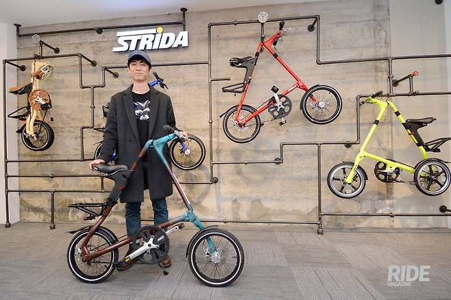 스트라이다는 "세상에서 가장 아름다운 삼각형"이라는 슬로건을 가졌다. 영국의 디자이너 마크 샌더스가 발명한 접이식 자전거로, 접는 유모차에서 아이디어를 얻어 제작된 자전거다. 스트라이다는 일상생활에서 편하게 타고 다닐 수 있을 뿐만 아니라, 휴대성이 뛰어나 출퇴근용으로도 애용된다.