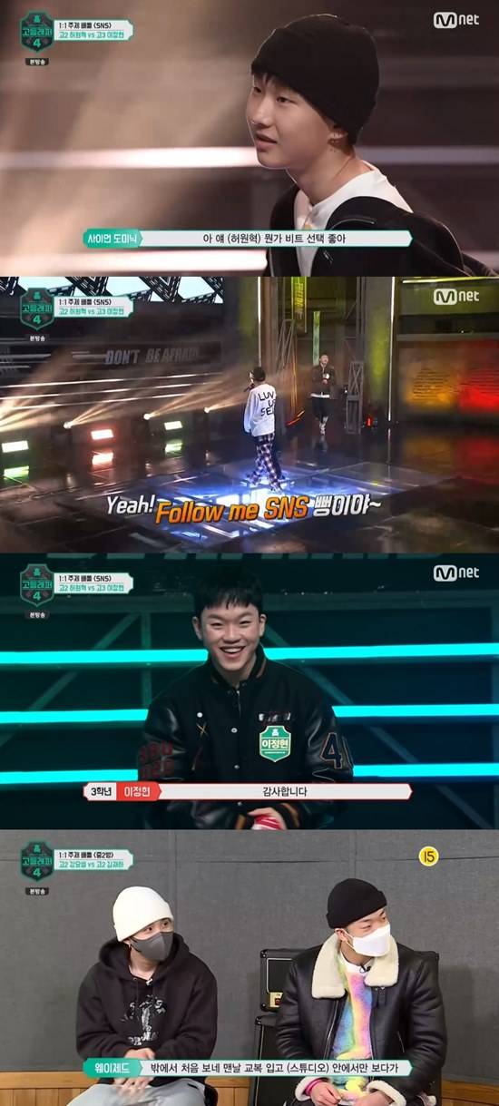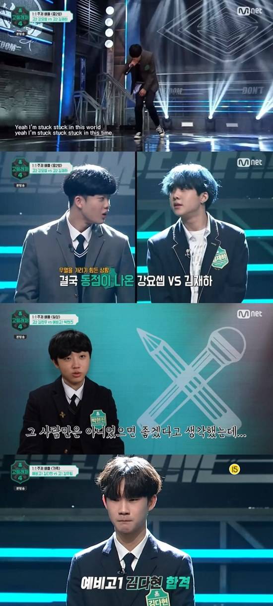 12일 방송된 Mnet '고등래퍼4'에서는 네 번째 미션 '1대 1 주제 배틀'이 펼쳐졌다.