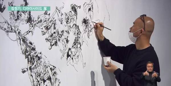 인터뷰: 김정기 작가 / 김정기, 디아더사이드 展"제가 여태까지 라이브드로잉을 많이 해왔는데, 머릿속에 계획했던 대로 나왔던 적이 한 번도 없습니다. 하다 보면 언제나 계획했던 방향과 틀려지고, 또 안 나오는 경우가 굉장히 많은데, 초창기 때는 그것이 너무 힘들었었어요. 라이브드로잉이 사람 사는 것과 약간 비슷한 것 같아요. 계획대로 안 되지만 그것을 다시 또 수정보완하고 다시 나아가는 것처럼 그림도 그렇게 그리고 있습니다. 그런 것이 라이브드로잉의 묘미인 것 같습니다."