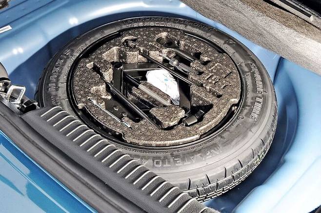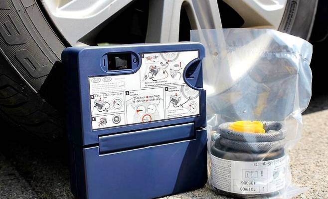 공구함과 별도로 기존의 스페어/템포러리 타이어 대신 시가잭과 연결해 공기압을 채울 수 있는 휴대용 에어컴프레서와 터진 타이어를 임시로 때울 수 있는 액체 실란트가 포함된 타이어 수리키트도 볼 수 있습니다.