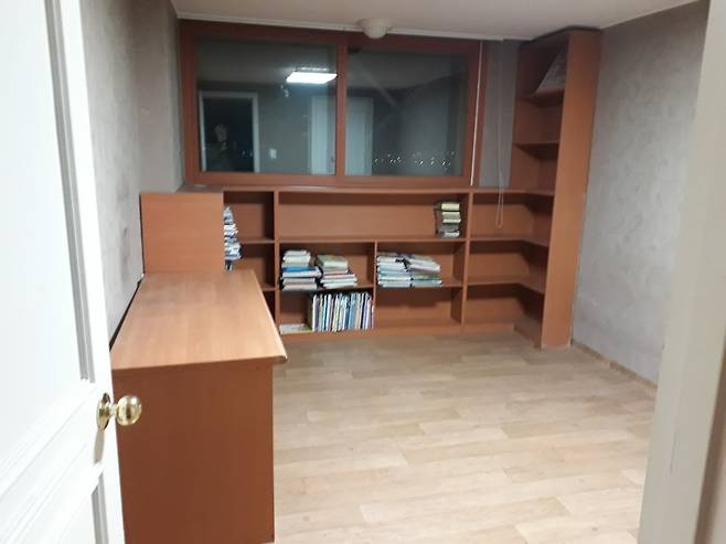 원래 전창이었던 창을 전 집주인이 반창으로 줄인 뒤, 붙박이장 책상을 설치해 놓은 모습입니다.