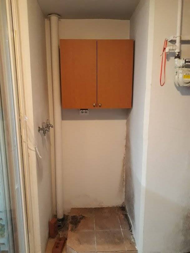 결로를 막아주는 페인트를 칠하고, 화이트 수납장에 화이트 타일 그리고 가전까지 화이트로 맞춰서 최대한 화사하게 만들었어요.Before