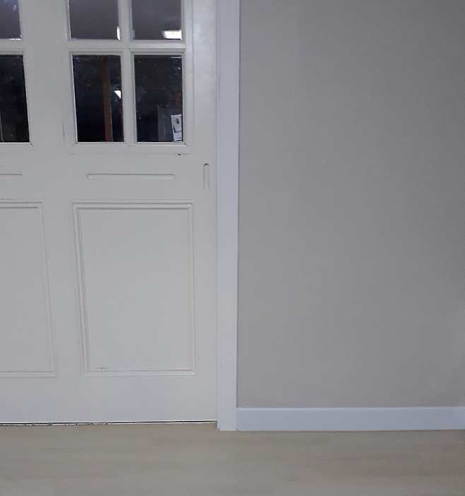 아트월을 철거하고, 천장의 몰딩을 모두 없애서 낮은 천장을 보완했습니다. 샷시를 교체하면서 확장부 단열도 다시 했고 큰방 베란다로 터닝 도어도 새로 달았습니다.