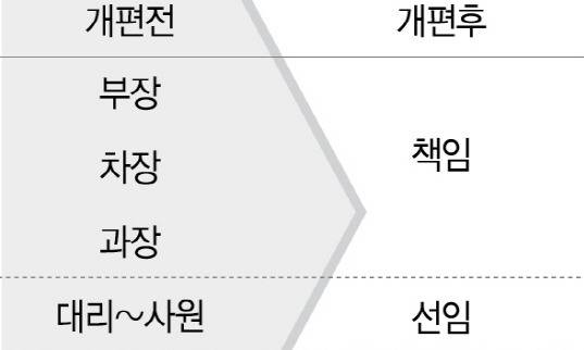 시대가 바뀌면서 자연스럽게 과거의 직급체계는 변화하고 있다. 회사가 말하는 변화의 필요를 그저 무시하기만 하는 직장인은 없을 것이다. 하지만 동시에 직급체계의 변화에 보이지 않게 숨어있는 의미 또한 정확히 알 필요가 있다. 늘 말하지만 자신이 서 있는 곳의 위치와 회사가 가고자 하는 방향성의 괴리를 알아야 한다. 그래야만 불필요하거나 쓸모가 사라져 먼지처럼 날아가지 않을 수 있기 때문이다.시대가 바뀌면서 새롭게 변화하는 것, 그리고 그 속의 진짜 변화의 의도를 알고 대응하자. 회사 안에서 대응 하지 못하는 사람은 밖에 나오면 더더욱 변화에 대응하기 어려울 수 있다.ps. 직위와 직급은 다른 체계지만 본 글에서는 같은 의미로 혼용하여 사용했습니다.