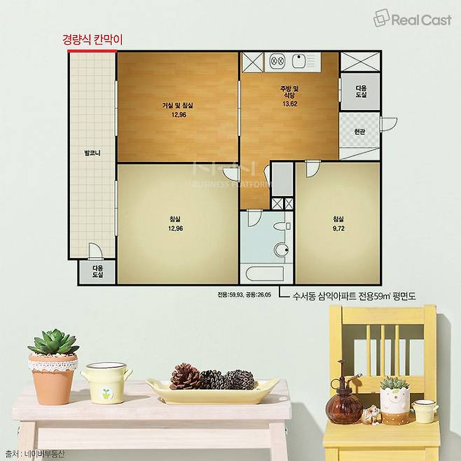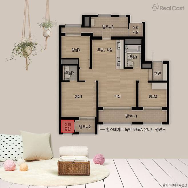 2005년 이후 시공된 4층 이상 아파트의 경우, 발코니 확장형 구조라면 발코니에 비상대피공간이 있습니다. 발코니에 경량칸막이를 설비할 경우엔 설치하지 않아도 되지만 발코니 확장형의 경우 최소 2㎡ 이상의 공간을 비상대피공간으로 할애하게 되어 있습니다.