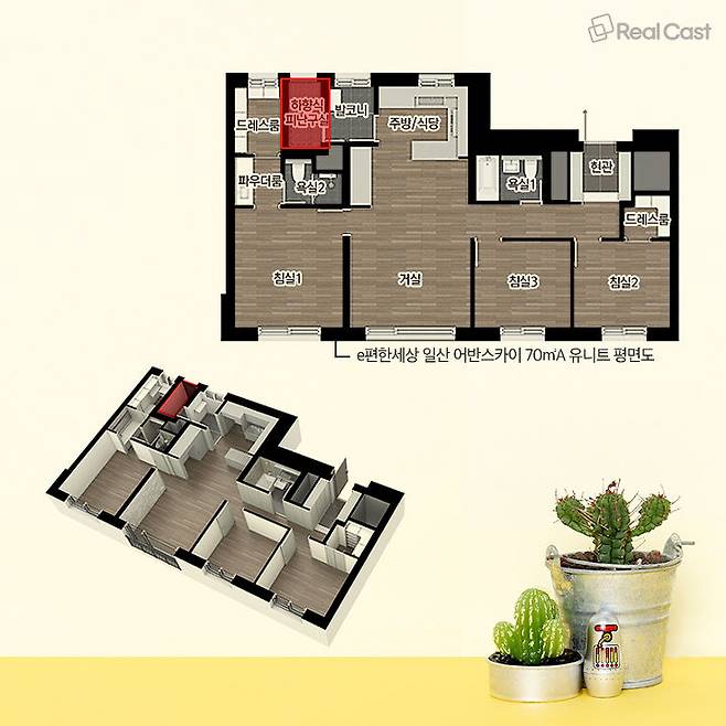 이 공간 역시 잡화를 쌓아두는 창고로 오용되는 경우가 많으나 반드시 물건을 적체하지 말고 비워둔 채 비상용 생수, 수건 등의 재난대비용품을 비치해 두는 것이 좋습니다.