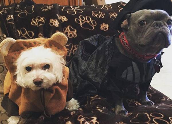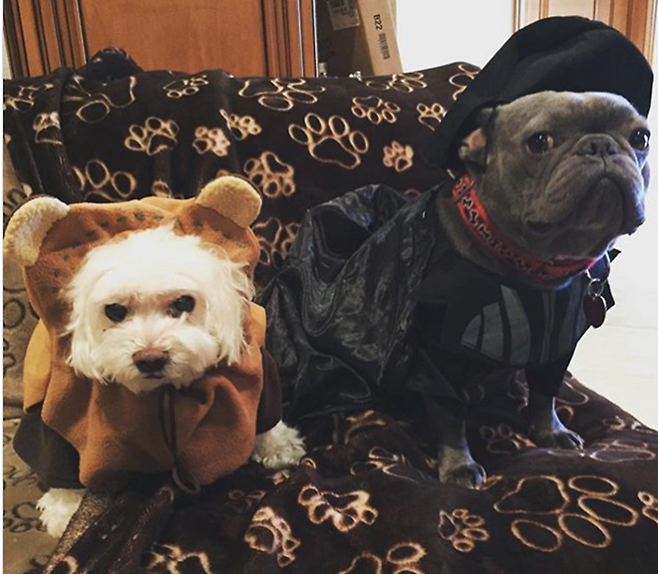 미드 위기의 주부들의 주인공이자, 몇 달 전 43세에 처음 득남한 유명 할리우드 배우 에바 롱고리아의 강아지들입니다. 스타워즈에 나오는 이워크 종족과 다스 베이더의 복장을 입혔습니다.
