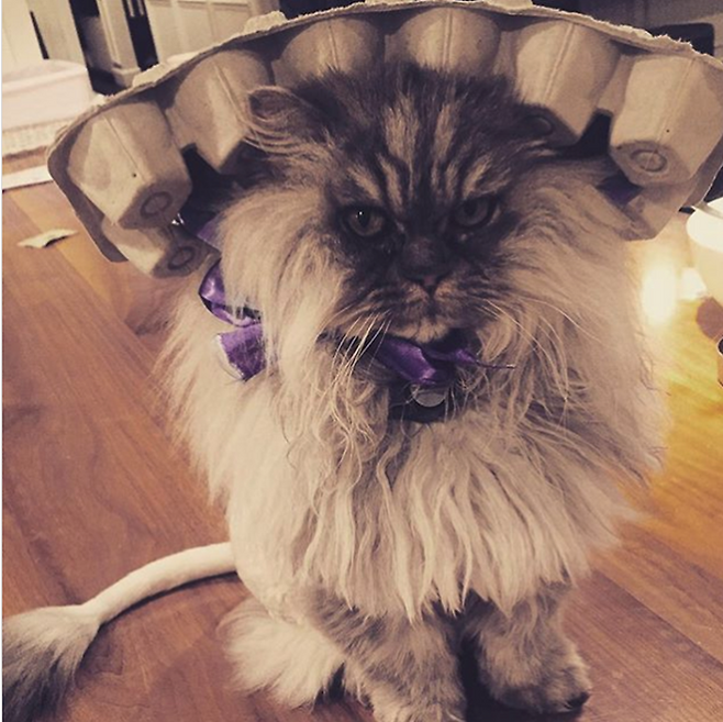 영화 언더월드 시리즈와 반헬싱의 주인공으로 유명한 케이트 베킨세일입니다. 그녀의 고양이는 머리에 달걀 포장지를 뒤집어썼습니다. 그녀는 '꼭 예쁠 필요 있어?'라는 짤막한 코멘트만을 남겨놨을 뿐입니다.