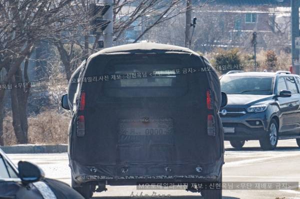 후면부는 두꺼운 위장막으로 덮여 구체적인 디자인은 알 수 없지만, 현행 스타렉스처럼 수직형 디자인이 적용된다. 특히, 테일램프는 더 과감하고 거대한 세로형 아웃라인과 그래픽을 통해 존재감을 발산할 것으로 전망된다.