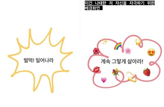 또한 이영지는 '계속 그렇게 살아라!'라는 문구에 대해선 "나태한 저 자신을 자극하기 위한 배경화면"이라고 설명했다.