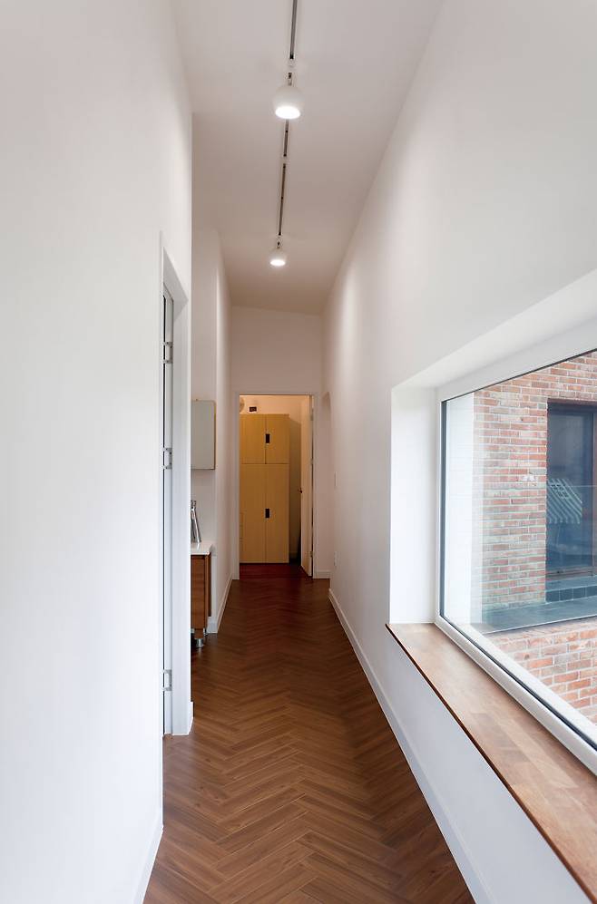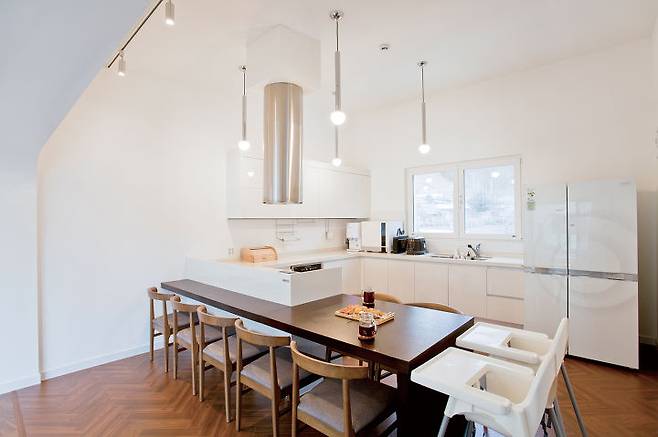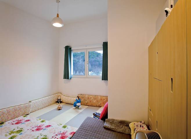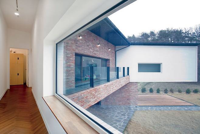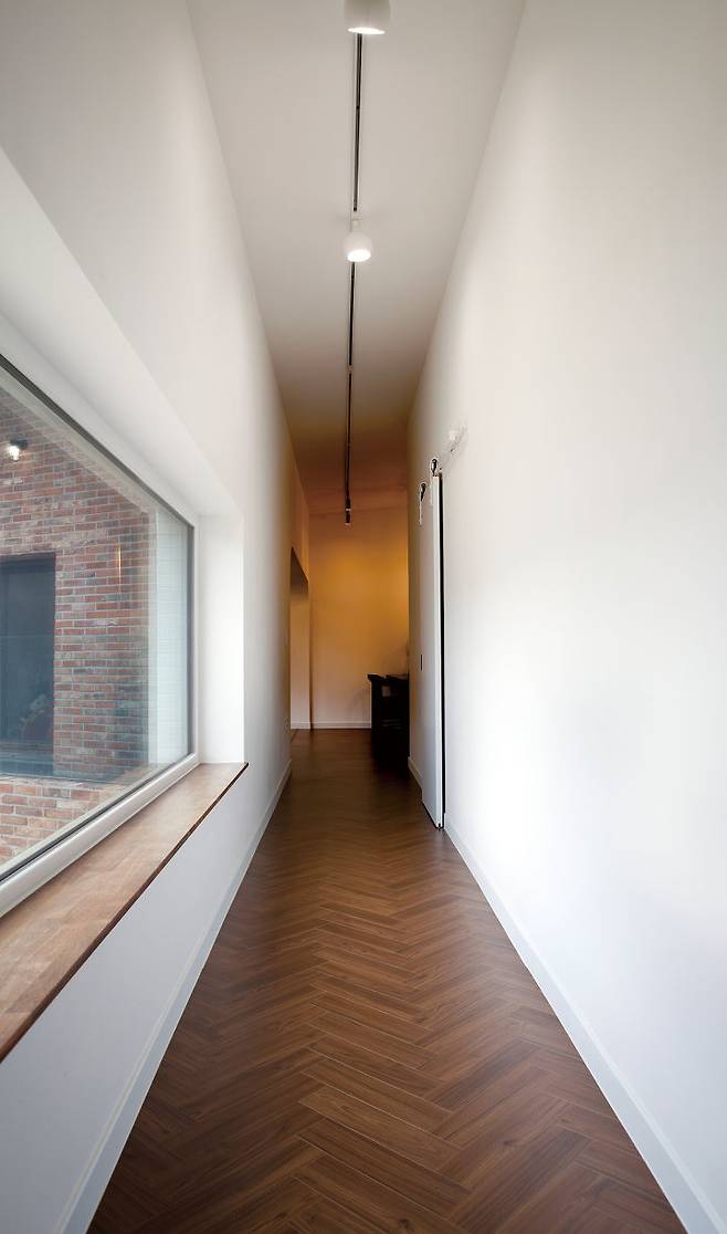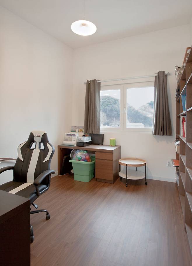 건축주는 “아이들이 크면서 벽에 낙서할 것이 뻔하기에 벽지 대신 페인트를 선택했다”고 한다. 거실의 큰 창호와 더불어 복도에 가로로 긴 고정 창을 설치해 어느 곳에서든지 마당과 마을을 조망할 수 있다. 더불어 해가 지나감에 따라 하루 종일 채광이 풍부한 것은 덤이다. 특히, 내벽은 복도를 제외하고 모두 가벽으로 세웠다. 후에 방을 합치거나 나눌 수 있고, 천장고가 높기에 복층을 만들 여지를 뒀다. 자녀 공간과 부모 공간을 좌우로 나눈 것은 세대 간 프라이버시를 확보한 설계다. 주방/식당과 다용도실, 세탁실, 복도를 연결해 순환 동선을 만들었는데 아내가 제일 좋아한다.