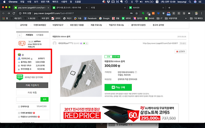 판매자가 보내주는 링크를 누르면 중고나라 사이트가 열립니다. 물론 가짜 사이트입니다. 진짜 중고나라 사이트와 비교하면 회원 숫자라든지 아주 미세한 부분이 다릅니다. 그리고 물품 사진과 설명 아래에 네이버페이라고 하는 아이콘이 있는데 이걸 누르면 네이버 페이 결제 사이트로 연결됩니다. 이때 진짜와 가짜를 가려낼 수 있습니다.