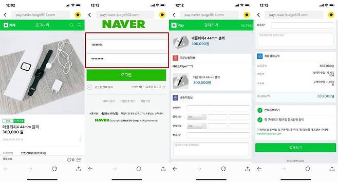 진짜 사이트는 네이버 아이디와 패스워드를 정확히 입력해야 로그인이 됩니다. 하지만 가짜 사이트의 경우 아무 글자나 입력해도 로그인이 됩니다. 제가 사기꾼 판별을 위해 아이디에 12345678 패스워드에 12345678을 입력해도 로그인이 돼서 결제창이 나타나더군요. 이건 99.9999% 사기꾼입니다.