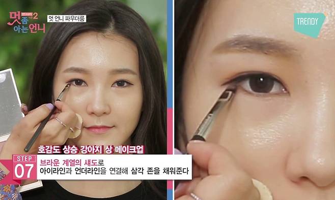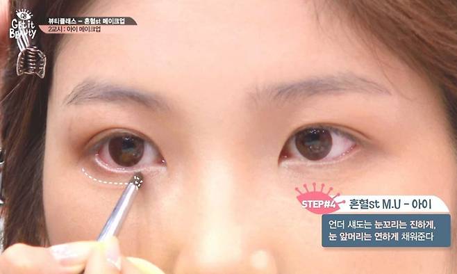 전 단계에 음영으로 깊은 눈매를 연출하였다면,