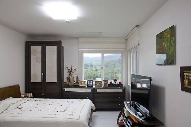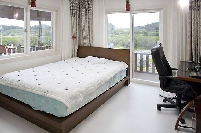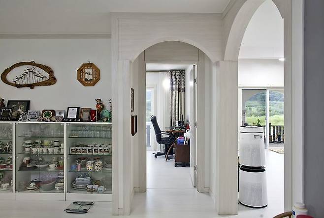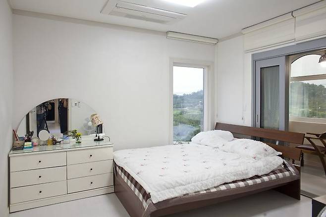 “이 방에선 날씨가 좋은 날 햇살이 수면에 반사돼 반짝이는 철새도래지인 주남저수지가 잘 보이며 주방에서 가까운 데다 전면 데크와 우측 마당으로 나갈 수 있어요. 딸도 탐을 내는 방인데 드레스룸만 아니라면 제가 차지했을 거예요.”