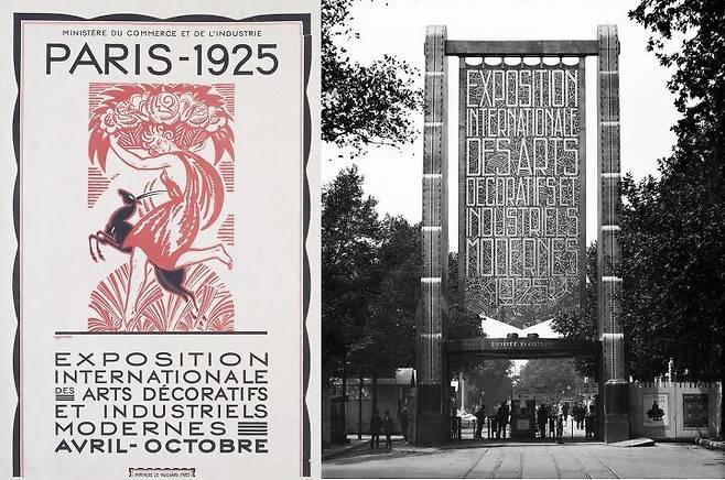 1925년 4월부터 10월까지 파리 한복판에서 성대하게 열린 <현대 장식미술·산업미술 국제 박람회>는 세계 최초의 장식미술 전용 박람회였어. 파리 한복판에는 아르누보 이후 서구에서 유행하던 건축, 인테리어, 실내 장식, 유리 공예, 장식품, 포스터 등 다양한 장식 미술과 상업 미술의 경향이 총집합하게 되지.