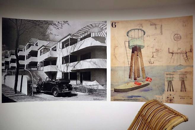 [벨라비스타 주택 단지 사진과 벨레부에 해변 구조대 타워 스케치 © Hendrik Bohle]