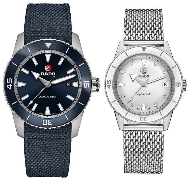 최근 라도는 세계적인 트랜드 예측 전문가 리더바이 에델쿠르트(Lidewij Edelkoort)와의 협업을 통해 '가벼움(Lightness)'을 새로운 브랜드의 컨셉으로 추진하고 있습니다. 지난해 선보인 하이퍼크롬 1616 모델 역시 오버사이즈의 시계지만 소재를 매우 가벼운 티타늄과 하이테크 세라믹이었다는 점을 봐도 알 수 있습니다. 캡틴 쿡 역시 모던 버전은 티타늄 소재의 케이스를 적용했습니다.