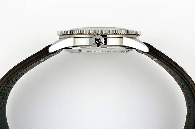 스테인리스 스틸 케이스지만 37mm의 직경을 가졌기에 착용감은 너무나 가볍습니다. 손목 위에서의 이질감도 거의 느낄 수 없습니다.단순히 케이스가 작아졌다는 것 만으로 가질 수 있는 큰 장점입니다.