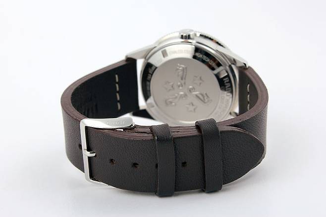 터프한 느낌에 남성적이면서 빈티지 스타일과 잘 어울리는 다크브라운 컬러의 가죽 스트랩이 기본 적용되었습니다. 반면 버클은 얇은 느낌에 우아함마저 듭니다. 물론 스트랩과 버클 역시 오리지날 모델에서 가져온 것으로 옛스러움이 가득한 정서를 마지막까지 잘 마무리하였습니다.