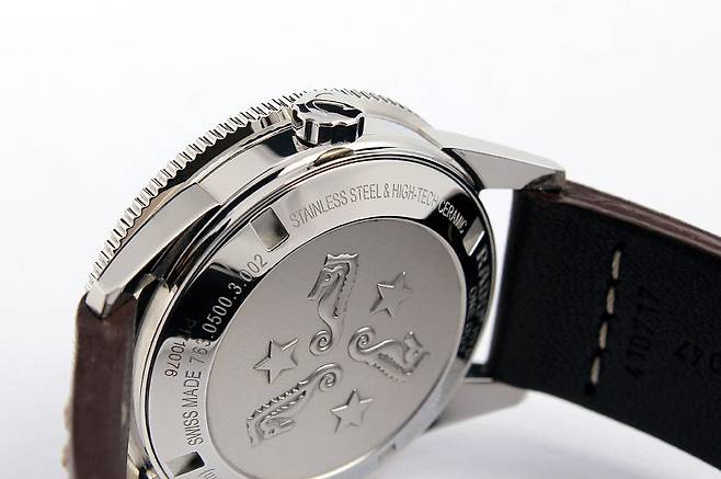 케이스백 중심에는 3개의 해마 스탬프로 장식되었으며 가장자리로 시계의 기본적인 정보들이 인그레이빙되어 있습니다. 방수 성능은 100m 입니다. 모던 버전은 방수 성능이 200m로 이 역시 오리지날 버전 시대의 방수 성능과 현대 다이버 시계의 방수 성능을 별도로 적용한 것입니다.