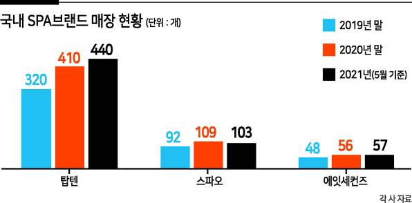 실제 지난해 국내 SPA 브랜드는 코로나19 타격에도 오히려 오프라인 매장을 늘리는 추세다. 지난해 12월 기준 410개였던 탑텐 매장 수는 5월 말까지 30개 더 증가해 440개가 됐다. 스파오도 지난해 처음으로 매장 수가 100곳을 돌파했으며, 에잇세컨즈도 지난해 매장 수가 늘어 5월 말 기준 57개 매장을 보유 중이다.