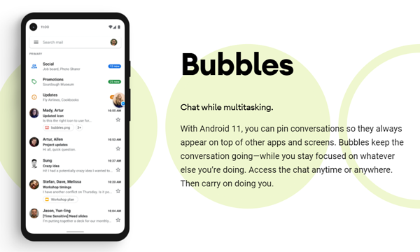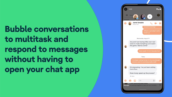 2. Bubbles를 사용하면 장치에서 간편하게 멀티태스킹을 수행할 수 있다. 이제 수행 중인 작업과 메시징 앱 사이의 전환할 필요없이 중요한 대화에 응답할 수 있다.
