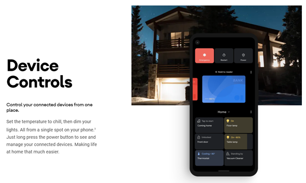 4. 전원 버튼을 길게 누르기만 하면 한 곳에서 모든 스마트 장치에 액세스 할 수 있다. 탭 한 번으로 온도 조절기 또는 스마트 잠금과 같은 안드로이드 11 스마트폰에 연결된 장치를 제어할 수 있으므로 여러 앱을 열 필요가 없다.