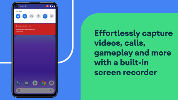 3. 스마트폰에서 일어나는 일을 캡처하고 공유할 수 있는 내장 화면 녹화(screen recording) 기능을 제공한다. 사운드 녹음도 별도의 추가 앱 없이 마이크, 장치 또는 양쪽 모두 녹음할 수 있다.