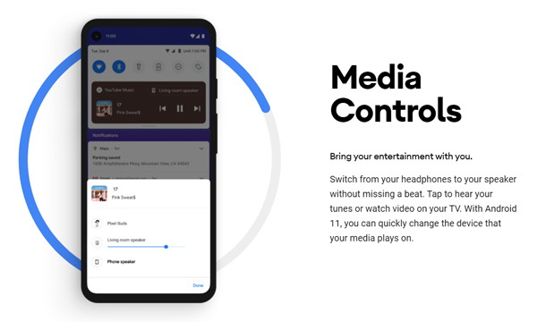 5. 미디어 컨트롤을 재설계해 이제 미디어가 재생되는 장치를 신속하게 전환할 수 있으므로 음악 듣기를 헤드폰에서 스피커로 바꿀 때 재생을 멈출 필요 없이 사용 가능하다