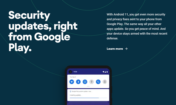 9. 추가적인 구글 플레이 시스템 업데이트 모듈을 사용하면 앱 업데이트와 동일한 방식으로 구글 플레이에서 더 많은 보안 및 개인 정보 보호 수정 사항을 스마트폰으로 전송할 수 있다. 따라 전체 OS 업데이트를 기다릴 필요없이 이러한 수정 사항이 제공되는 즉시 받을 수 있다.