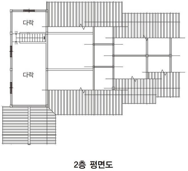 대문을 지나 마당에서 주택을 바라보면 높낮이가 다른 지붕에 궁궐 같은 규모감이 느껴진다. 맞배지붕을 중첩했다 할지, 4단 솟을지붕이라 할지 정의하기 어렵다. 거기다 누마루는 십자형지붕처럼 중첩해 올렸다. 아내의 요청대로 석현재만의 새로운 스타일이 탄생했다.