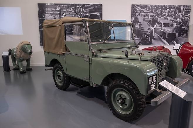 최초의 영국 자동차 회사의 가장 오래된 모델을 보며 느낀 감흥이 가시기도 전에 그 옆에 있는 ‘랜드로버 시리즈 1(1948년)’이 다시 한번 심장을 뛰게 했습니다. 이 차는 1878년 자전거 등을 만들던 회사로 출발한 로버(Rover)에서 나온 사륜구동 모델로, 당시 전무였던 스펜서 윌크스, 그리고 수석 디자이너 마우리스 윌크스 형제가 자신들의 소유했던 윌리스 지프를 보고 영감을 얻어 만든 모델이었습니다.