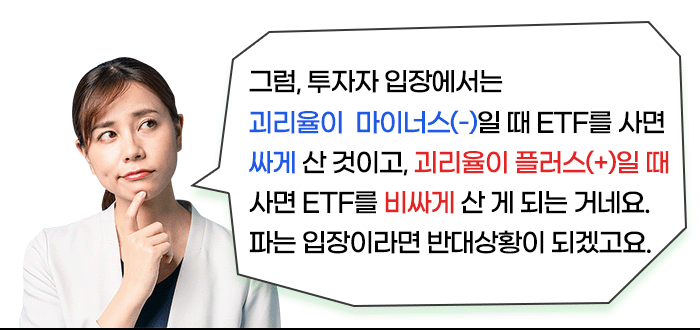 하지만, 가장 대표적인 원인은 앞에서 말한 것처럼 수요와 공급의 쏠림 현상입니다. 우리는 이런 추정순자산가치(iNAV)와 시장가격의 차이를 ‘괴리율’이라고 부릅니다