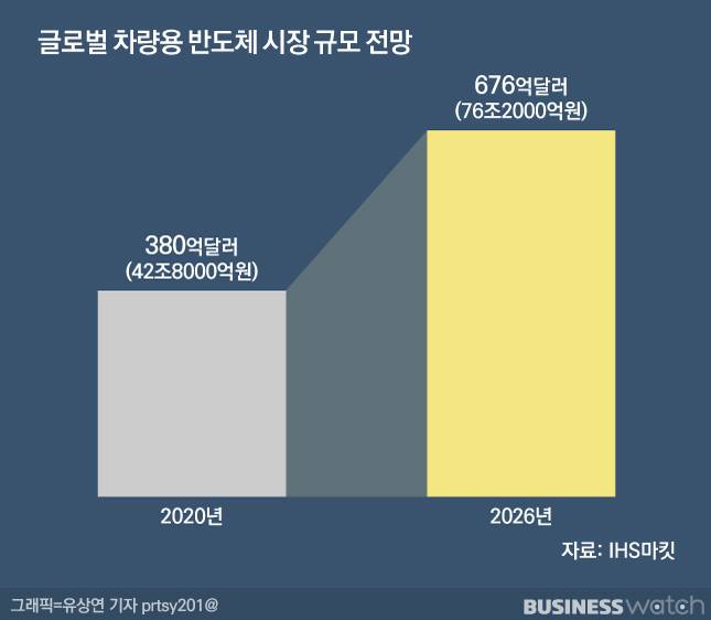 시장조사기관 IHS마킷에 따르면 올 1분기 반도체 공급난으로 인한 자동차 생산 차질 물량은 130만대에 이른다고 합니다. 글로벌 컨설팅 회사 앨릭스파트너스는 올해 자동차 매출이 606억달러(67조9326억원) 가량 감소할 것으로 예상했습니다.