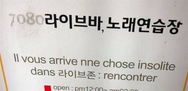 굳이 분류하자면 유머 코너라고 해야 할까? 바로 우리나라 곳곳에서 발견하는 이상한 프랑스어 간판이나 안내를 찍어 공유하고, 실소를 나누는 곳이다! 실소도 웃음이니, 유머 코너라고 해도 손색은 없을 것 같다.