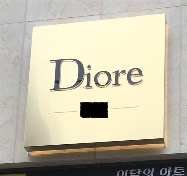 diore라는 단어는 프랑스어 사전에 없다. 딱 봐도 다른 브랜드 Dior을 따라 한 게 표가 나는데, 이 경우 틀린 프랑스어의 문제이기도 하지만, 기존에 있는 브랜드에 철자 하나만 슬쩍 추가하고 폰트 같은 그 외의 요소를 모조리 따라 한다는 점이 외국인 시선에서는 쇼킹하다고 한다.