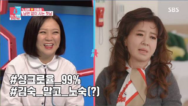 노사연의 집에는 언니 노사봉이 방문했다. 손이 크기로 유명한 노사봉은 동생을 위해 음식 한보따리를 가지고 왔다. 노사봉은 "진짜야?" "제부 있지?" "없어?"를 연발하며 집에 이무송이 없는 것을 재차 확인했다. 노사연은 "이무송이 나타날 것 같다. 간이 커진 것 같다"는 노사봉에게 "혼자 있어보는 거다. 떨어져있으면 보고싶어지는지 실험해보는 거다"라고 설명했다.