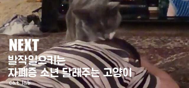 2. 밖에서 울고 있는 아기 고양이를 구조한 후. 아기 고양이를 집으로 데려오자 고양이는 엄마처럼 안아줬다.