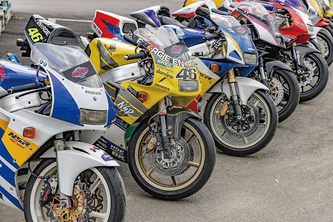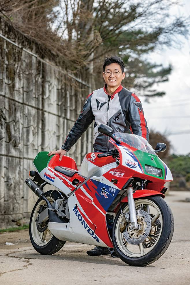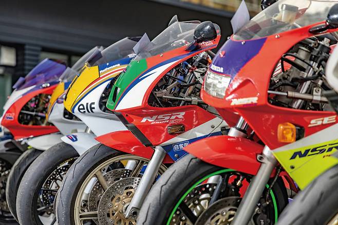 제가 NSR클럽에서는 나이가 가장 많은데요.(웃음) 원래 저희 나이 또래들이 타던 바이크로 그 시대에 현역으로 탔던 세대죠. 요즘 젊은 사람들은 레트로라고 하면서 타지만 나는 원래 타던 바이크고 내 시대의 바이크에요.(웃음) 그래서 라이딩 기어도 모두90년대에 만들어진 걸 착용하고 있어요.바이크를 좋아해서 장르별로 다 소장하면서 타고 있지만 그중에서 2T만의 매력이 높죠.2T는 사실 엔진에 대한 어느 정도 지식이 있고, 그 메커니즘을 알고 있어야 한다고 생각합니다. 어느 정도 자가 정비가 가능해야 유지가 수월하죠. 요즘 나오는 인젝션 바이크와는 다르게 뭔가 살아있어서 내가 키우는 느낌이 들어요. 많은 사람들이 2기통과 2행정의 차이를 몰라요. 그건 2행정의 엔진을 느껴보지 않으면 절대 몰라요. 환경적인 문제로 이제는 제작이 불가능하고, 2행정만의 매연과 토크 그리고 고알피엠에서 오는 적은 배기량의 힘이 정말 매력적이죠. 250cc가 잘나가봐야 얼마나 나가냐고 하는데 튜닝과 세팅만 잘하면 고배기량 바이크와 서킷이나 코너에서도 견줄 수 있습니다.