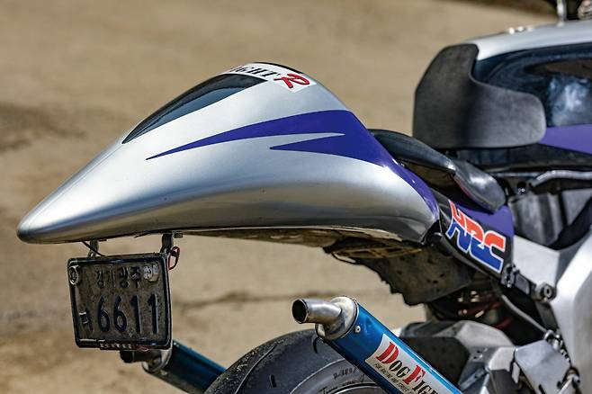 고등학교 때 로망이었던 바이크가 제 손에 있네요.(웃음) 그때는 못 탔던 바이크를 이제 나이가 들어서 소장할 수 있는 여건이 되어 인생에 동반자로 지내고 있어요. 모든 부분에서 다 불편한 바이크죠. 킥으로 시동을 거는 것부터 해서 여타 올드 바이크를 타는 라이더들의 고충들과 비슷한 부분이죠. 고알피엠구간 챔버에서 나는 특유의 엔진음과 건식클러치만의 특정한 소리가 매력적인 바이크에요. 페인팅을 업으로 하고 있는데 이번에 카울 도장을 직접 해서 더욱 정이 가네요.