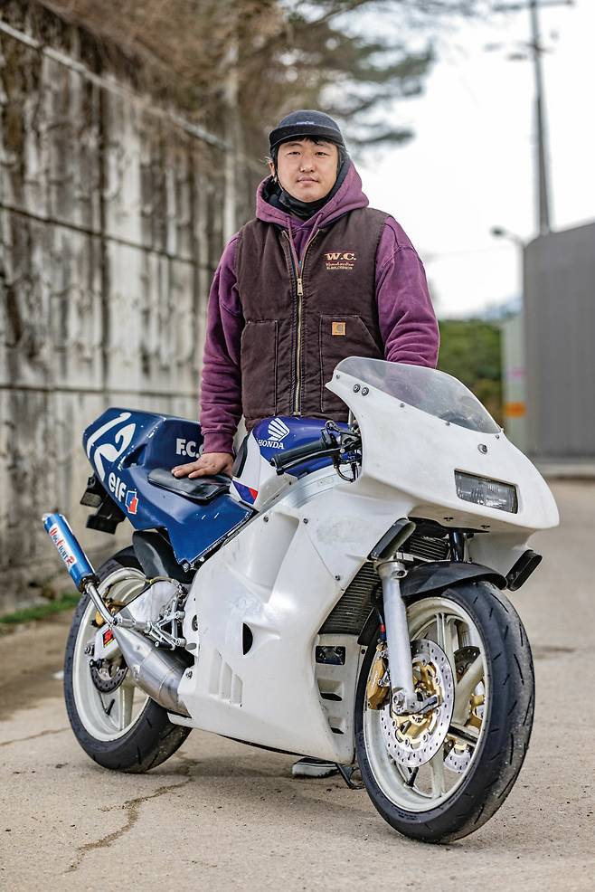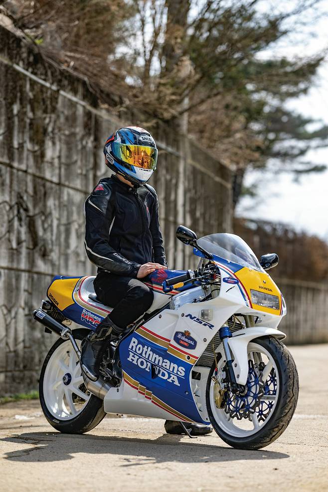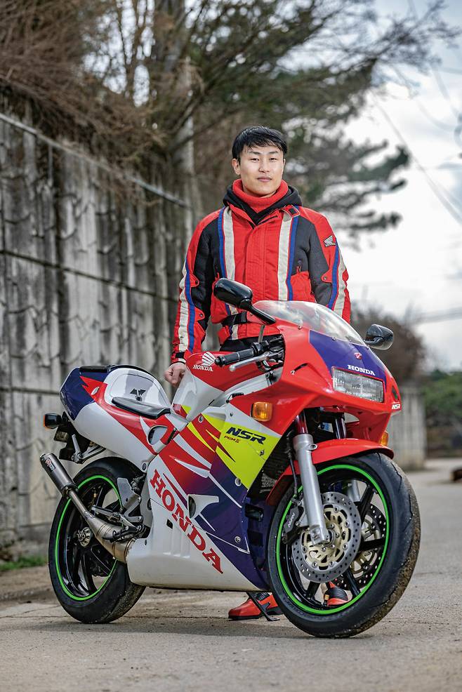 약간 향수 같은 건데요. 이제 어렸을 때 남자들은 많은 오토바이를 동경하잖아요. 그 당시에저는 2스트로크 바이크에 대한 동경이 있었고, 그게 나이가 들어서 바이크에 대한 동경의 향수를 찾다가 NSR을 탄 거죠. 여러 가지 바이크를 바꾸며 탔었는데 이제는 오롯이 하나를 탈 생각으로 NSR을 타고 있어요. 저는 바이크를 타면서 느끼는 매력 중에서도 사운드 부분을 가장 좋아합니다. 스로틀을 감았을 때 2기통에서 오는 매력도 있지만 2스트로크챔버에서오는 그 얇으면서 고음으로 올라가는 소리가 너무 좋아요.(웃음)