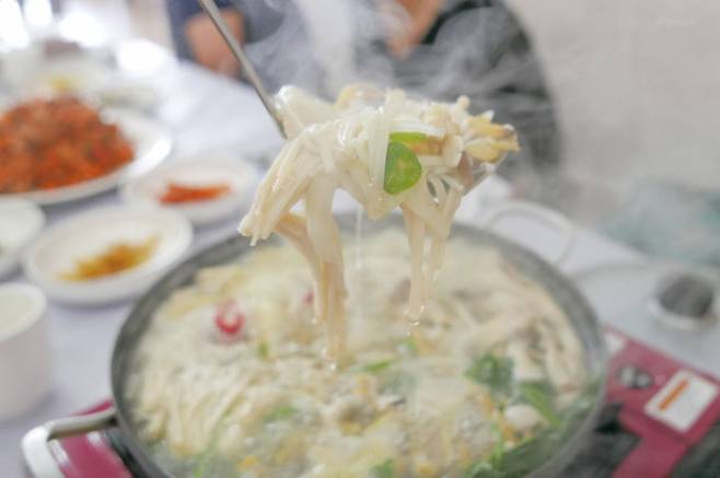 바지락은 보통 국물 내기용으로 쓰는 경우가 많은데 이곳에서는 바지락을 메인 재료로 다양한 요리를 선보이고 있다. 특히 특유의 시원하고 깊은 바지락 육수로 끓여낸 바지락 전골이 인기다. 먹고 먹고 또 먹어도 좀처럼 줄어들지 않을 정도로 바지락 양이 매우 푸짐하며 통통하게 살이 오른 바지락만을 사용해 씹는 식감 또한 좋다. 맑은 국물의 바지락 전골과 함께 곁들이면 좋은 바지락 비빔밥도 추천한다. 아삭아삭하게 씹히는 채소와 초고추장, 그리고 또 엄청 많은 바지락까지 비벼 한 숟가락 먹고 바지락 전골 국물 한 숟가락 뜨면 최고의 조합이다.
