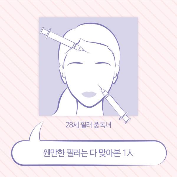 코를 성형한 터라 이마에 필러를 넣으니 티가 너무 많이 나더라고요. 분명 조금만 넣었는데도 부자연스러워서 한 번 맞은 후 절대 안 맞고 있어요.