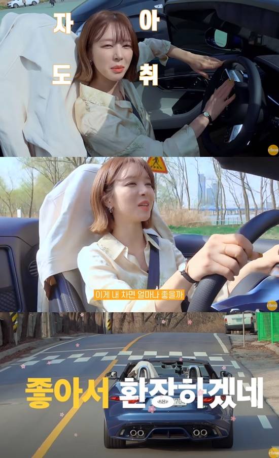 또 한참 달리던 초아는 "차도 장난 아니고 환경도 예쁘다. 성공한 여자 느낌 나냐. 내 모습에 취한다. 좋아서 환장하겠다"며 크게 웃으며 행복함을 감추지 못했다.